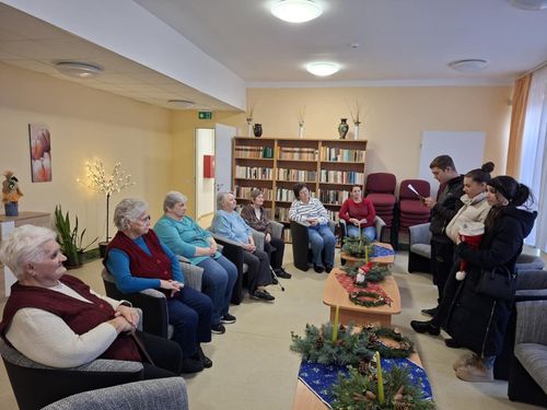 A jószolgálati tevékenység keretében a szociális ágazatban tanulók koszorúkat készítettek a Sajószentpéteri Idősek Klub tagjai számára.